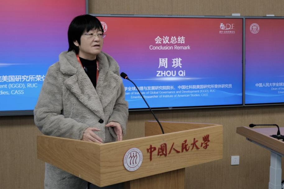 最后,中国人民大学全球治理与发展研究院院长周琪作总结发言。她表示,本次分论坛虽主题宏大,但中外学者各抒己见,展现诸多共识,为未来行动奠定基础。外国专家见解拓宽视野,不少学者对中国在全球治理中的作用寄予期望。针对“中国能否取代美国在全球治理中的作用”,她明确中国会积极承担国际责任,强调中美达成共识对全球治理的重要性。她期待未来中外学界代表多到研究院交流合作,共同推进全球治理相关议题探讨。