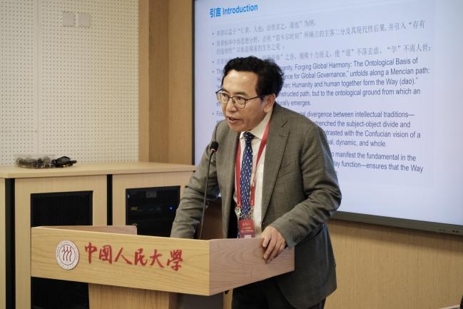 长江商学院研究学者、人文与商业伦理研究中心主任王建宝以“学以成人,天下大同——‘以人为本’的存有论根基与全球治理新义”为题,剖析全球失序问题,对比中西存有论传统,倡导构建精神人文主义。